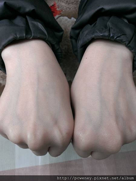 右邊的皮膚塗抹後,明顯覺得很保濕,在上面形成一保護膜